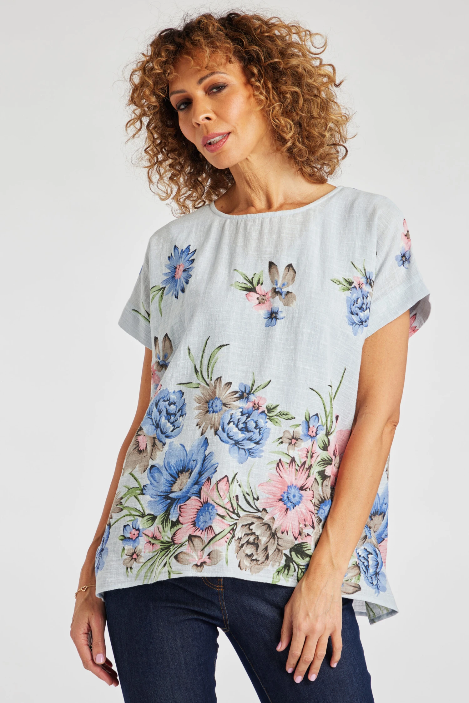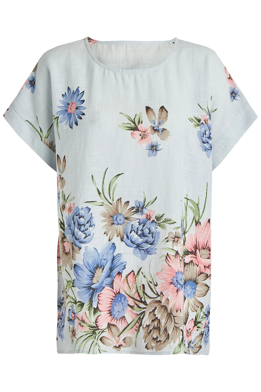 With its short sleeves and floral design, this top is an easy way to refresh a summer outfit. It features a vibrant all-over floral print in a comfy fabric with versatile short sleeves. Pack it in your suitcase alongside linen trousers and a pair of strappy sandals to create a feminine day-to-day holiday look.