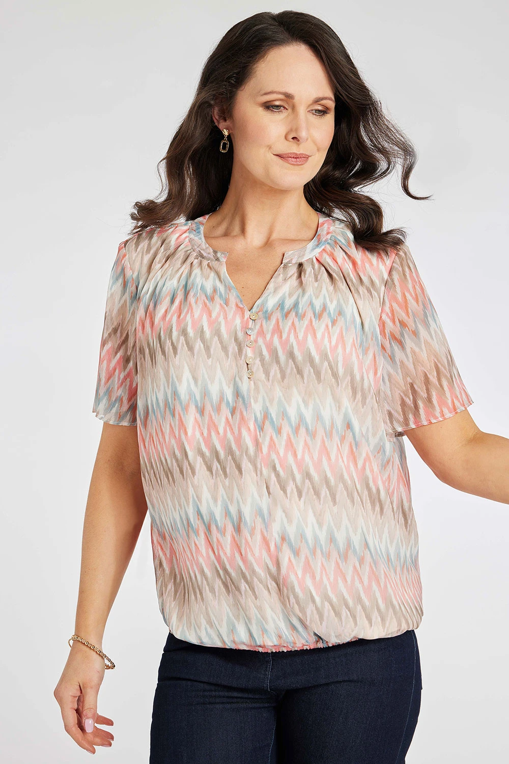 A stand out piece chosen by Lorraine Kelly herself, this beautifully designed ikat print blouse is a must-have this season. Perfect for casual days at the weekend or on holiday. Wear it with jeans or shorts and sandals for a great casual outfit.