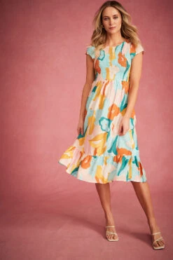 Stand out this Summer with this beautifully designed modern floral dress. It is Included in Lorraine Kelly’s collection, Lorraine Loves. Complete with short sleeves and a shirred bodice to give a flattering figure, keeping you comfortable throughout the day. Wear with your favourite sandals and a small handbag for a great Summer look.