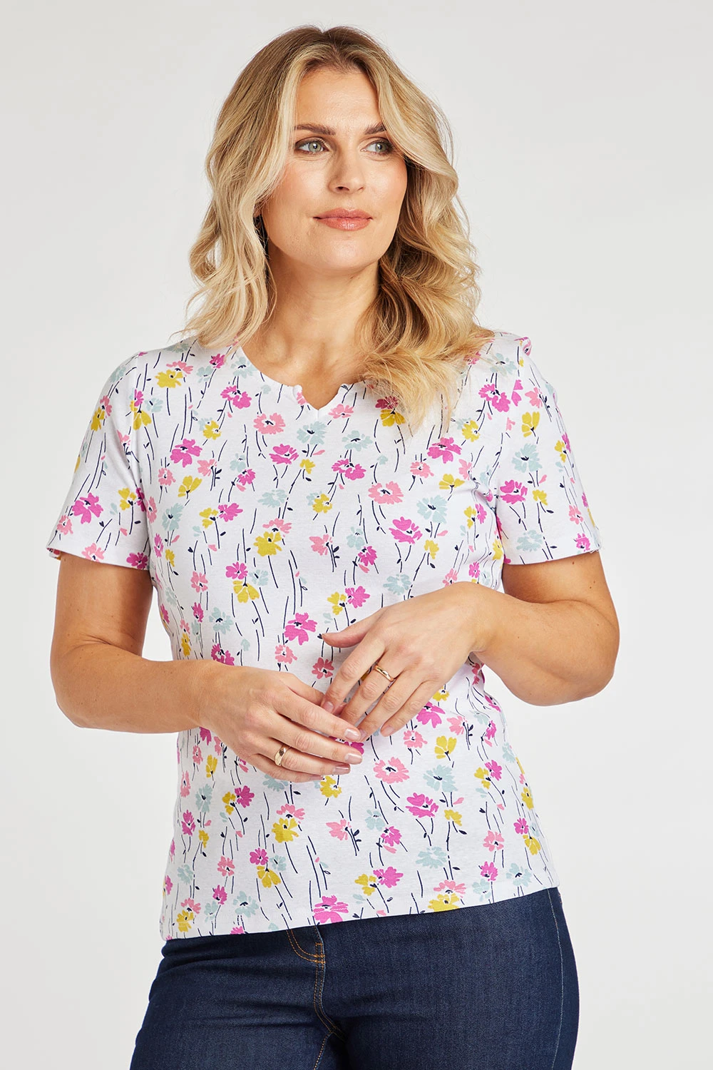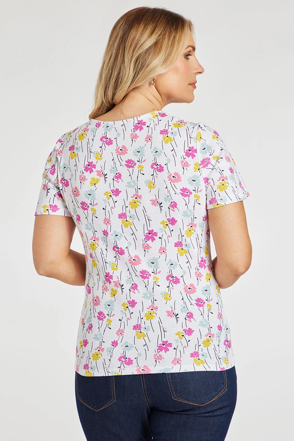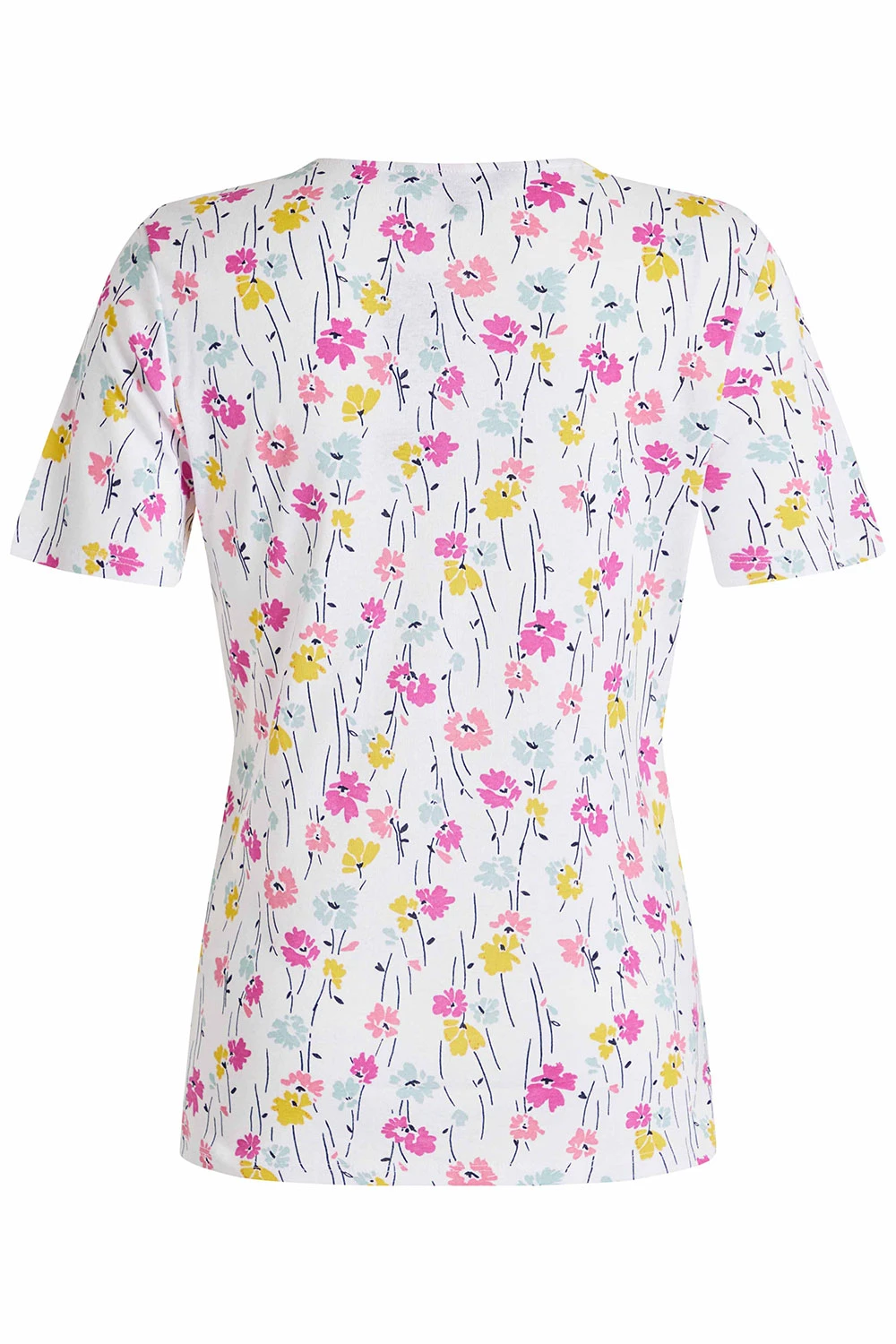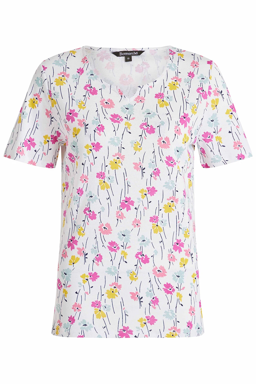 This short sleeve top with multi ditsy print is ideal for the cooler days. The t-shirt is made from 100% cotton to allow maximum comfort. For a casual look style the t-shirt with jeans and comfy trainers.