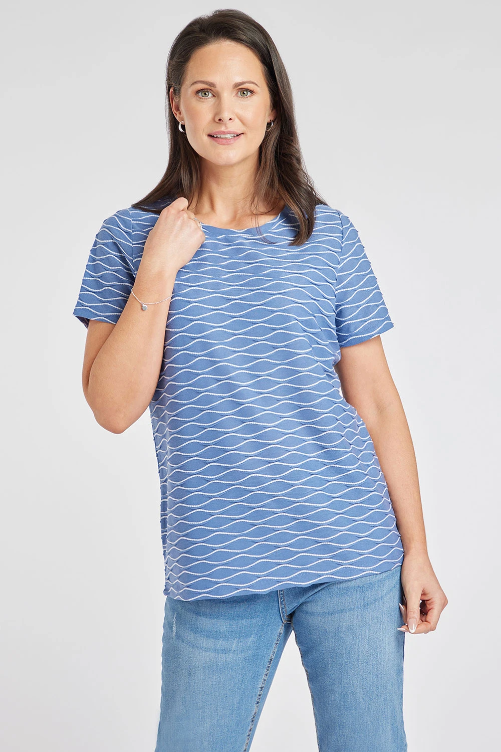 This t-shirt has a textured pattern on the front along the design. The round neck and short sleeves for a a classic style and the colour is great for pairing with most items. Add shorts and trainers for a summer time outfit.