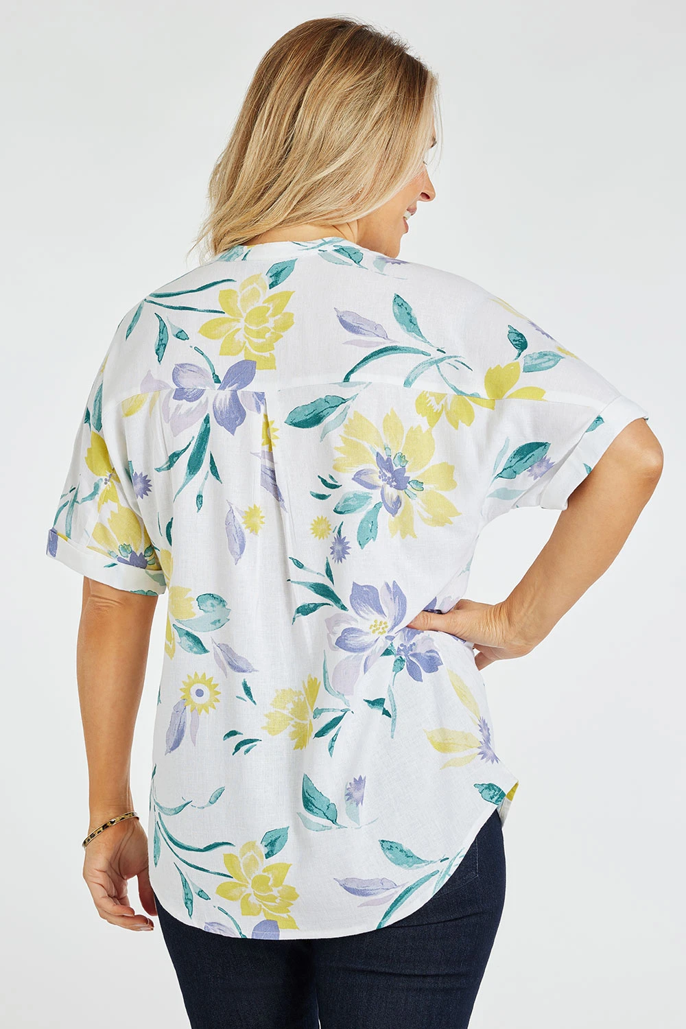 Add colour and print to your look with this versatile shirt which features a pretty floral print. The style has a relaxed and loose fit. It is topped off by a V-neckline with short sleeves. This is the ideal top for both smart and casual occasions. Another item that is a part of Lorraine Loves, chosen by Lorraine Kelly.