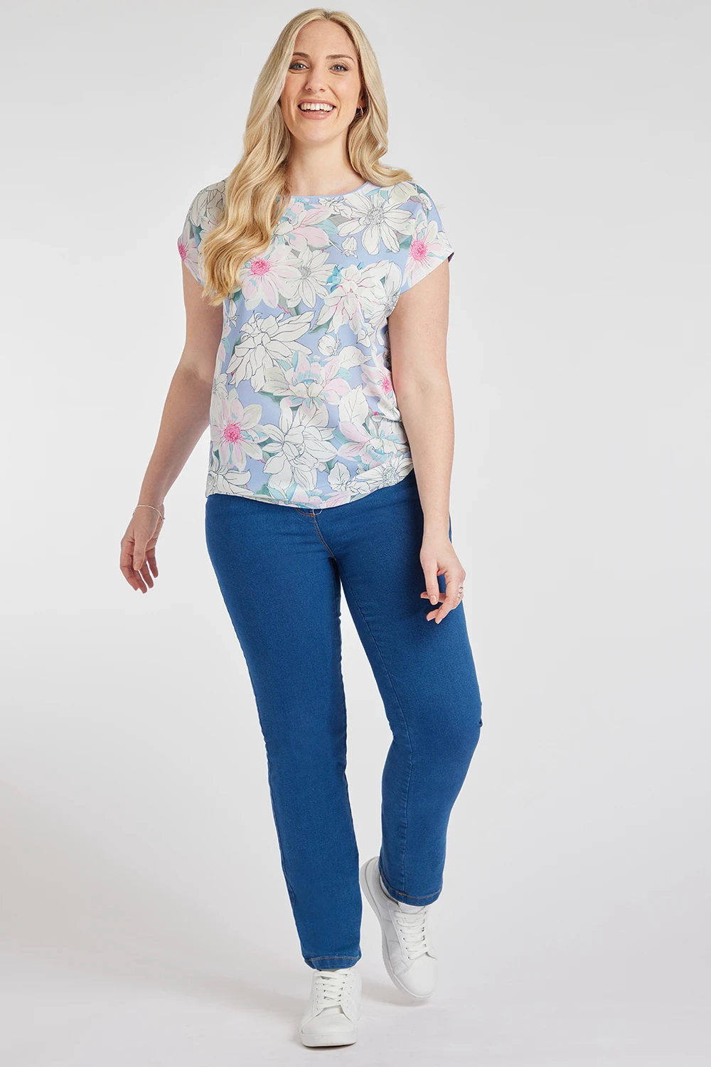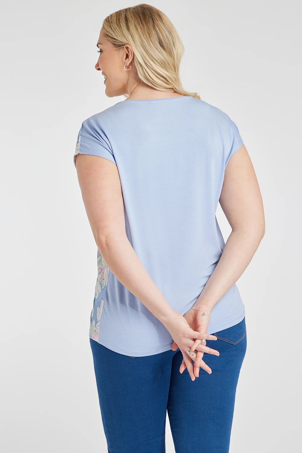 Add some floral print to your wardrobe with this woven floral outfit woven top. The beautifully detailed outlines of the flowers make it subtle but still feminine. The print is on the front and plain on the back. Style with your favourite jeans and trainers for a comfortable weekend look.