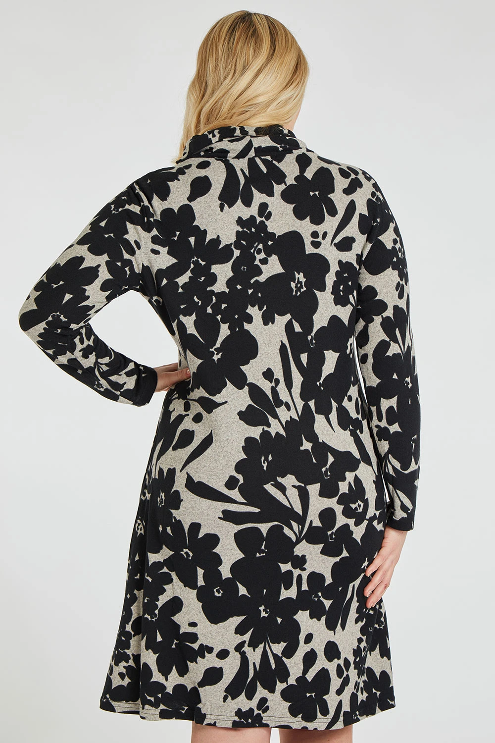 This long sleeve dress comes in an on-trend floral print with a cowl neckline. The soft stretch fabric is both comfortable and flattering for an easy everyday look. Pair with heeled boots and accessories for a great Spring look.