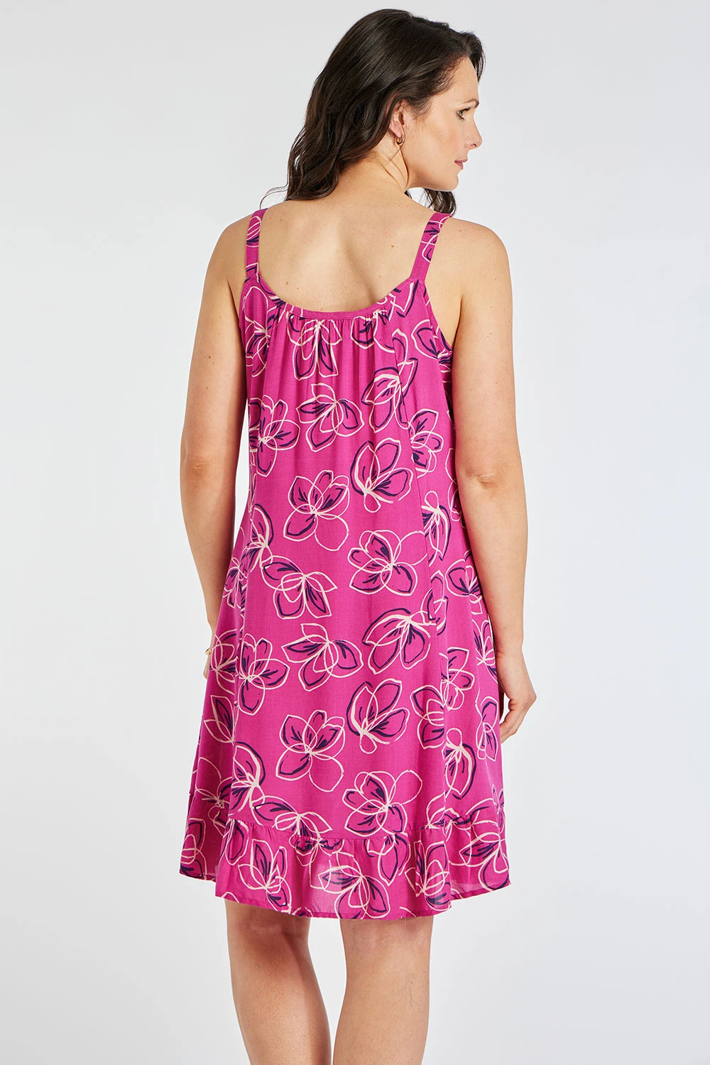 In a pretty simple daisy print design, this printed dress is perfect for summer! With a flattering frill hem and cami style straps, this dress is comfortable and stylish when paired with sandals and a light jacket.