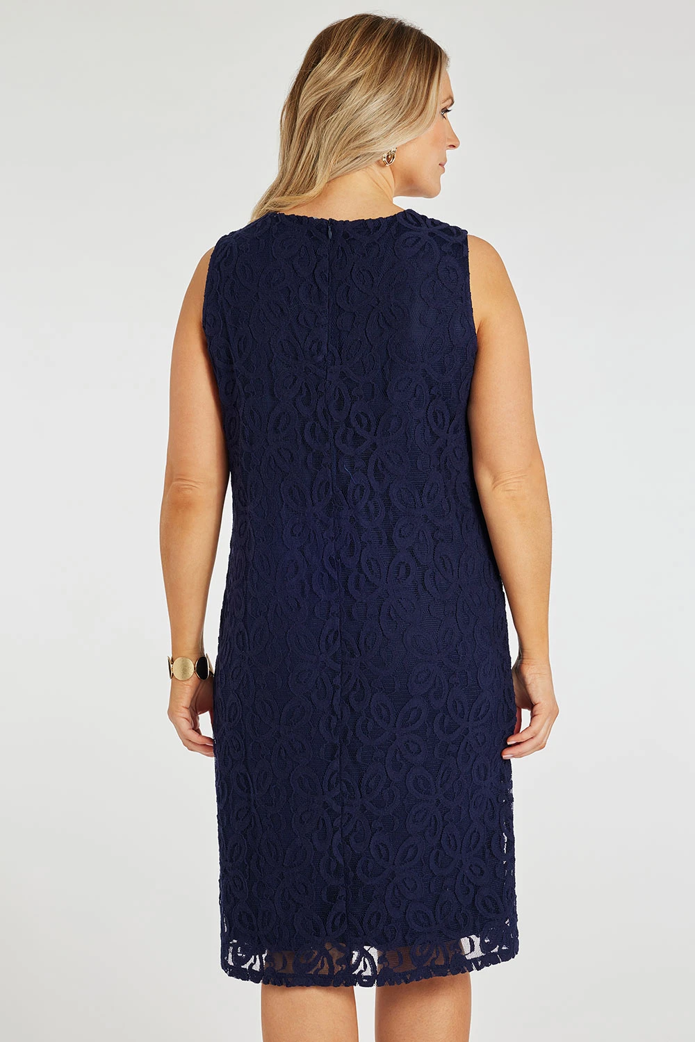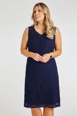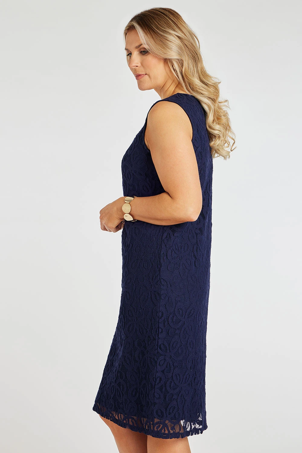 This sleeveless lace dress is perfect for a special occasion or family function. The colour and lace fabric give it a sophisticated look. The v-neck paired with the sleeveless design will keep you comfortable and fashionable in the Summer. Wear with heels and a small clutch for the perfect occasion wear.