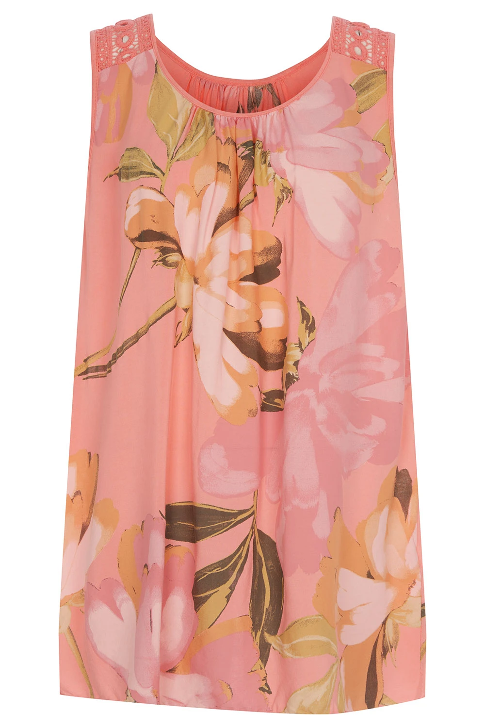 Refresh your wardrobe with this beautiful sleeveless top. In a large floral print, it has a flattering loose fit that skims the hips, finished with a round neckline. Team with crops or jeans for the perfect casual look.