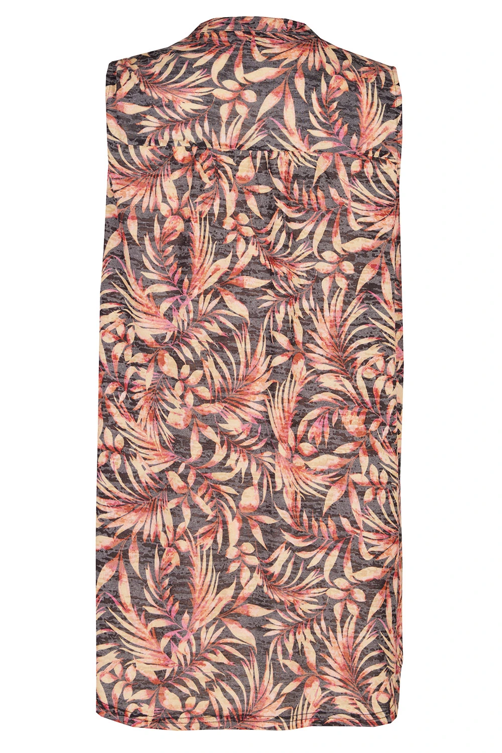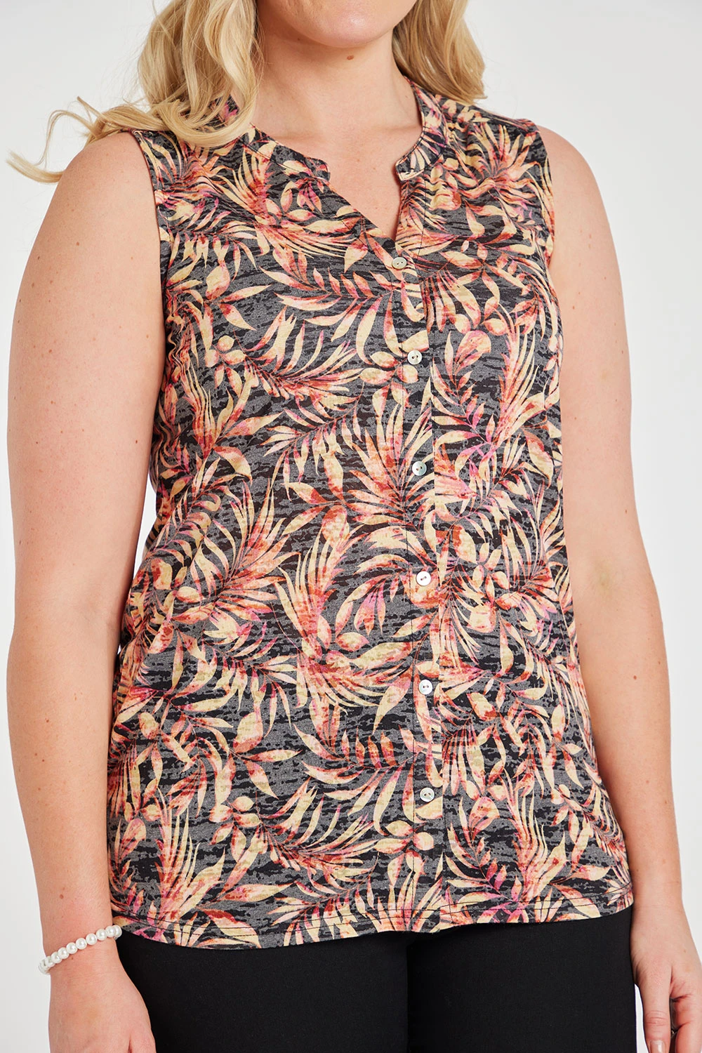 This sleeveless palm design shirt is perfect for the Summer months. The burnout palm leaf design paired with the button through style makes it breathable and fashionable. Wear with cropped trousers and trainers for a casual holiday look.