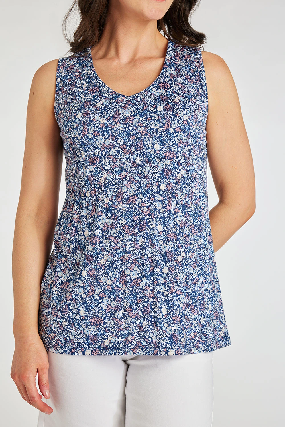 This floral print top is great for dressing up or down. The plisse material makes it a flattering fit and the print adds a feminine touch. Pair with jeans and boots for a casual look or tucked into black trousers and heels for a more dressed up outfit.