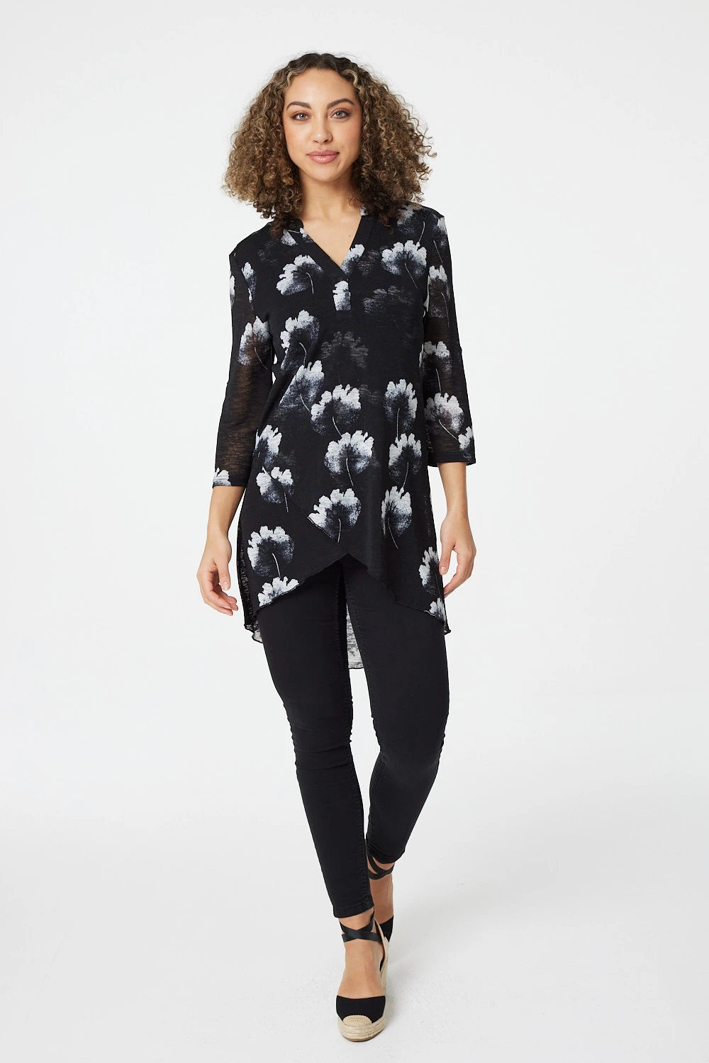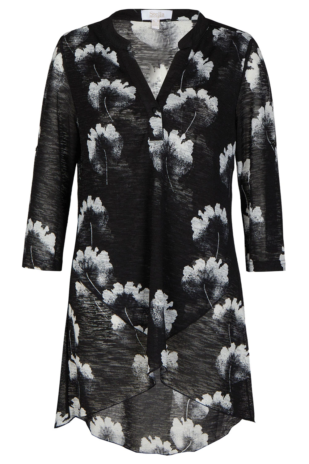 STELLA MORGAN | Add this sophisticated 3/4 sleeve floral tunic to your collection this season. The delicate floral pattern paired with watercolour design adds a feminine touch to the item. Pair with trousers and heeled shoes for a great office look.