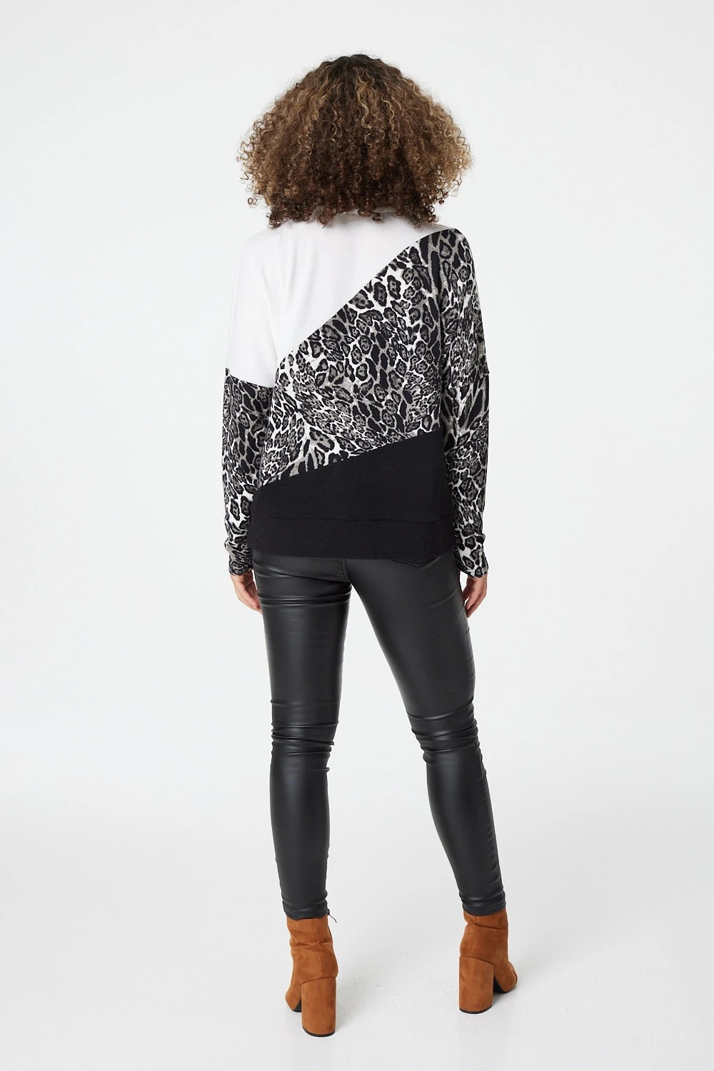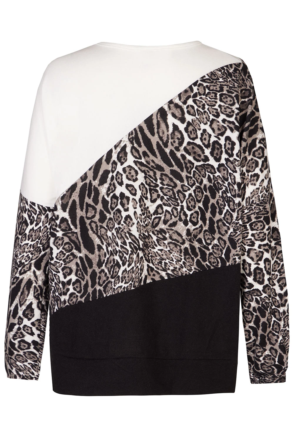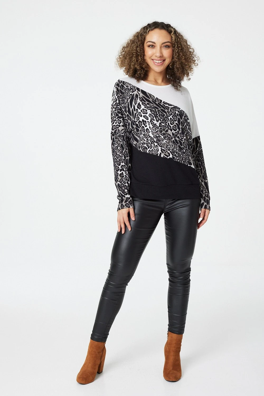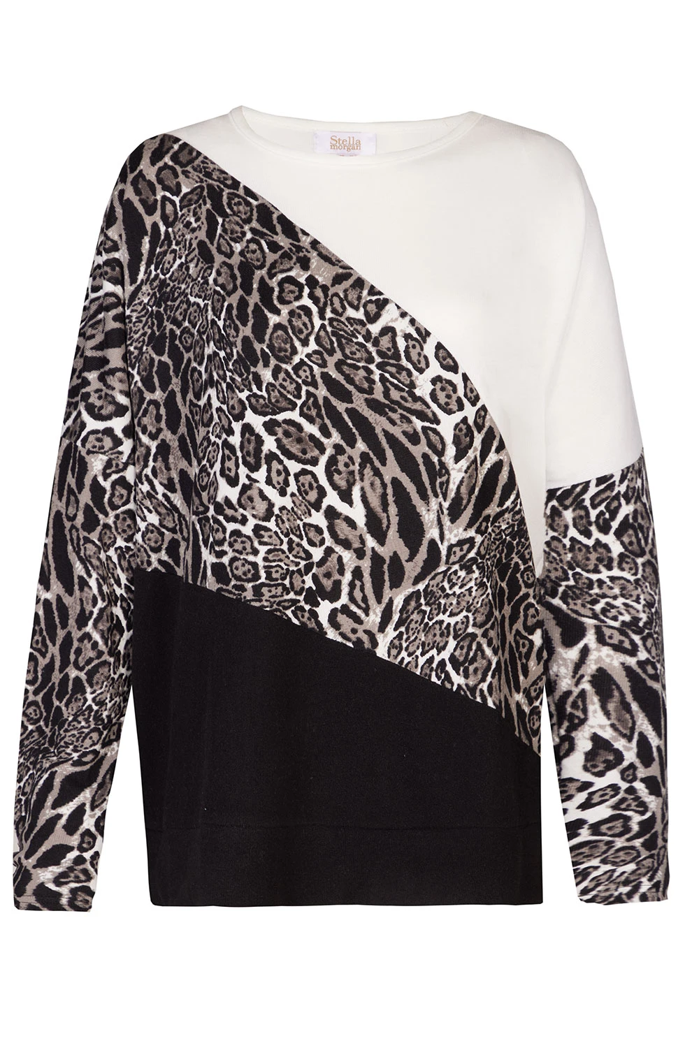 STELLA MORGAN | This elegant, comfortable top is perfect for a casual yet stylish look. Complete with colour block and animal print design. Featuring long sleeves and a round neck, team this top with a pair of jeans or jeggings to complete the look.