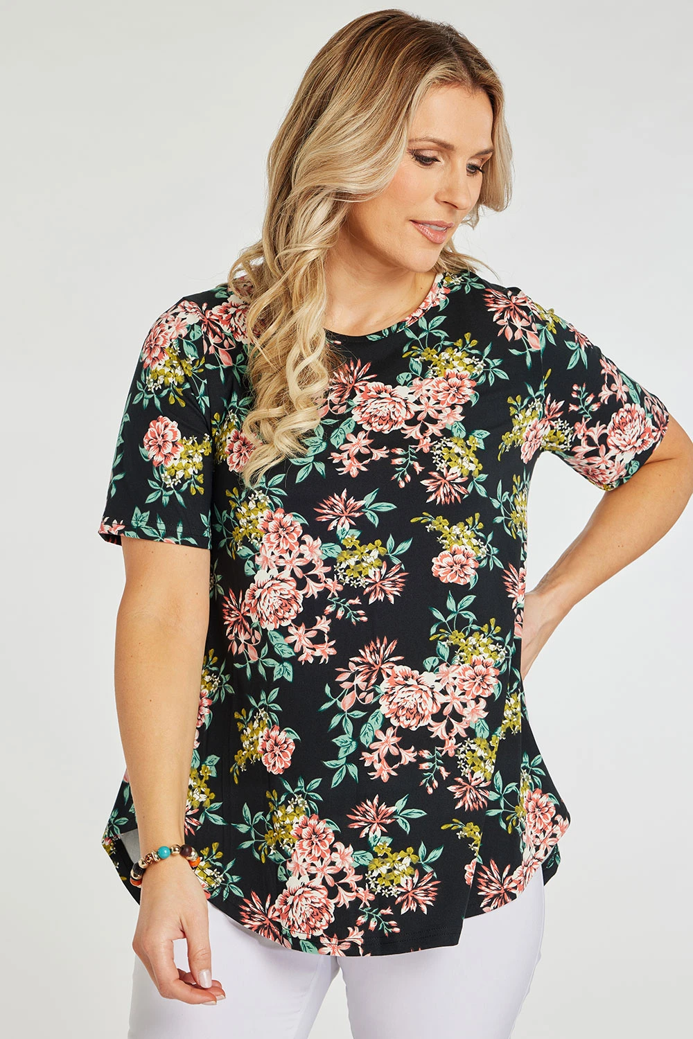 STELLA MORGAN | Get ready for Spring with this floral print top. Complete with short sleeves and a round neck to make it breathable and versatile for any outfit. Perfect for pairing with jeans or leggings for a great casual look.