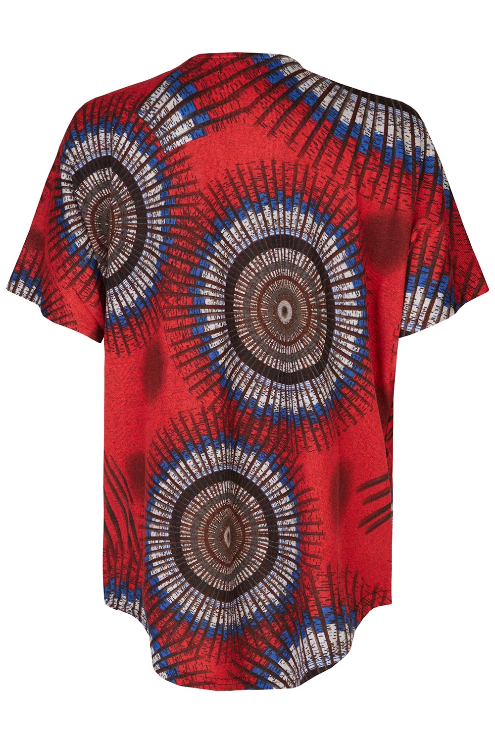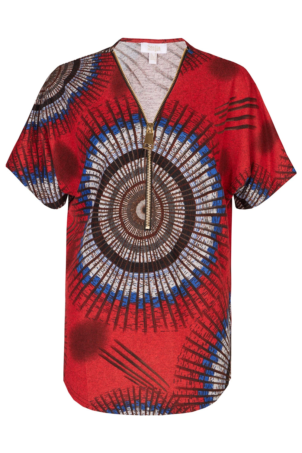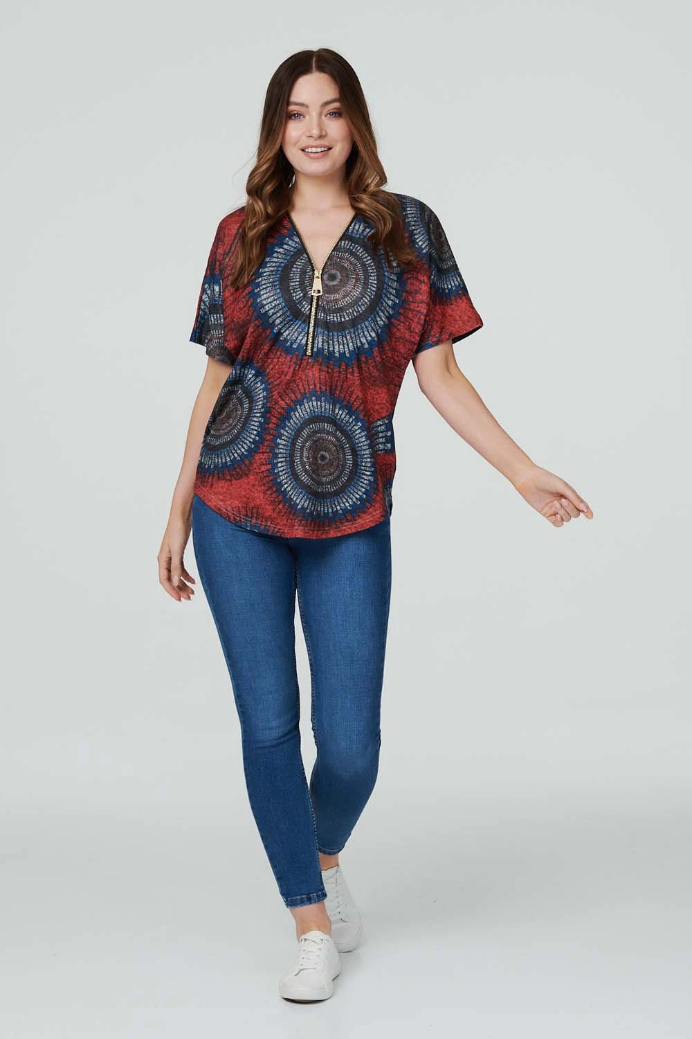 STELLA MORGAN | Add this statement circle print top to your collection this Spring. The stand out pattern paired with the short sleeves and zip neckline make it a must-have. Style with jeans and heeled boots for a smart casual look.