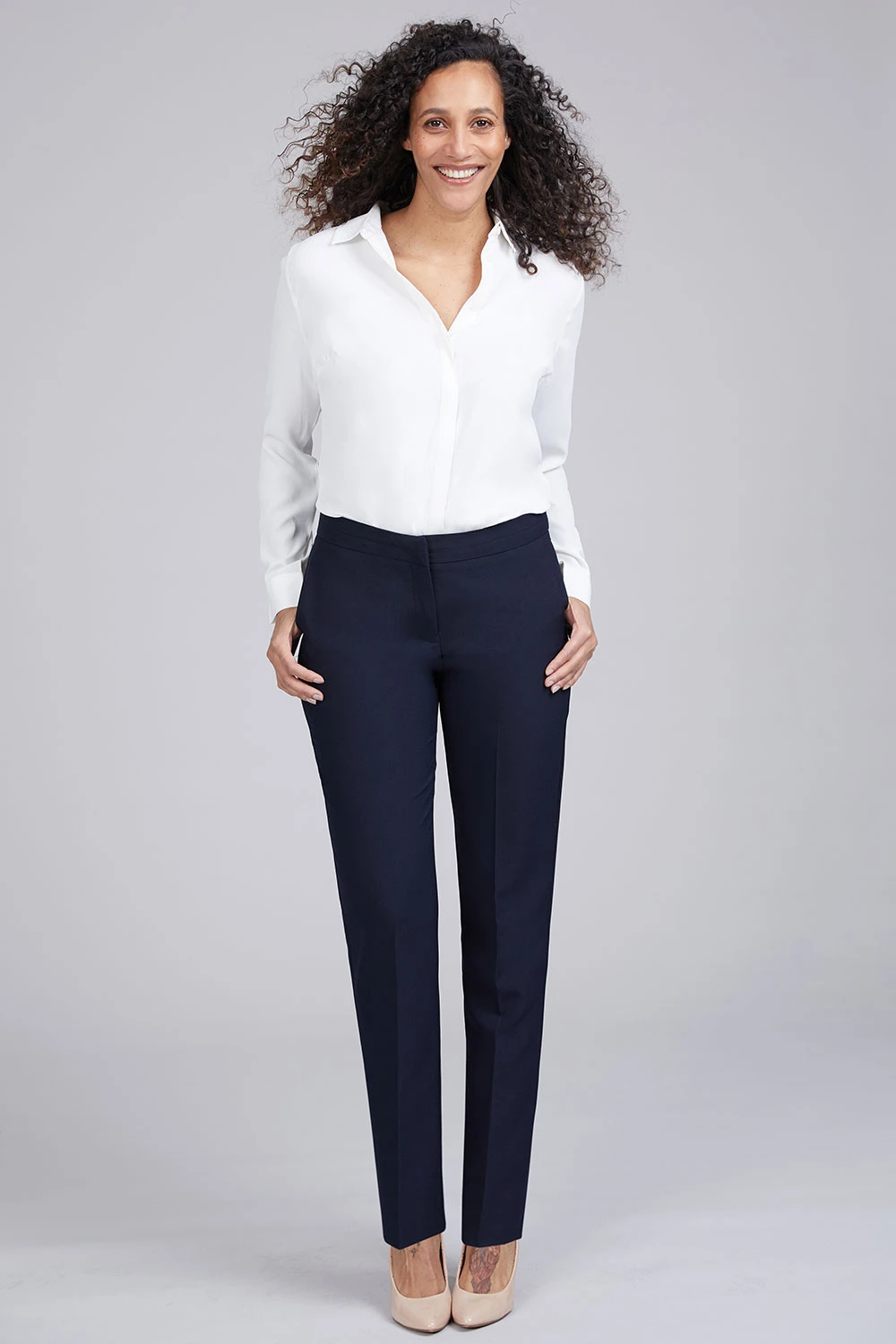 Dress for any occasion with these sophisticated trousers. They are made from a soft but formal fabric, with a fly front fastening. The smart tailored fit is tapered at the ankle for a slimline, figure-flattering look. You can team them with a floral blouse for an evening out or a family lunch.