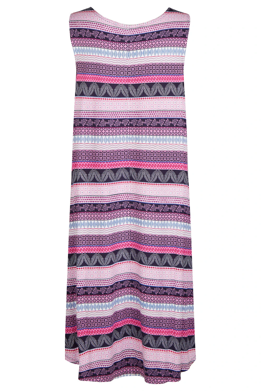 Get ready for Summer with this beautifully designed tribal striped print swing dress. Complete with a sleeveless design and jersey material to keep you comfortable and stylish this season. Wear with sandals and a light jacket for a great evening Summer look.