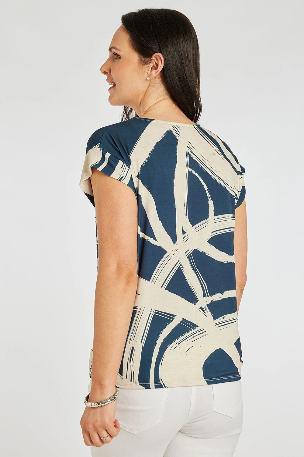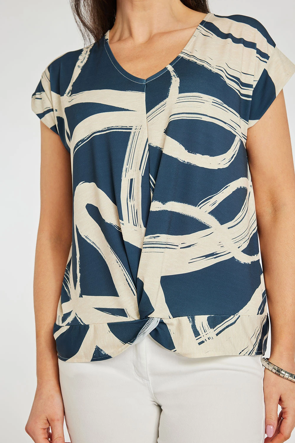 Add this brushstroke design top to your collection this Summer. The oversized brushstroke design paired with the twist front detail makes this top a must have this season. Wear with linen trousers and sandals for a great Summer look.