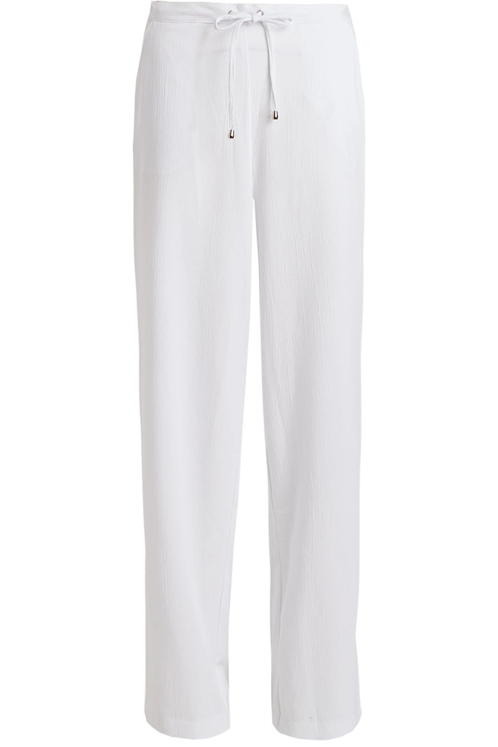 Flattering and lightweight, these trousers are perfect for warmer weather and holidays. They have a loose fit wide leg for extra comfort and breathability. Easy to slip on and off, this style features a comfortable elasticated waist with a drawstring tie and detachable belt. Pack them in your suitcase with a light cotton top and sandals for an effortless summer outfit.